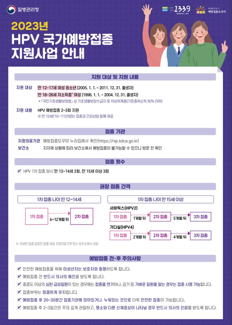- 만 12~17세 여성 청소년(2005.1.1.~2011.12.31.)