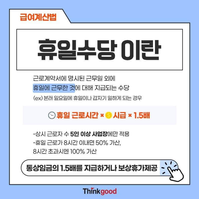 오늘 알아본 것은 이 중 휴일 수당입니다.