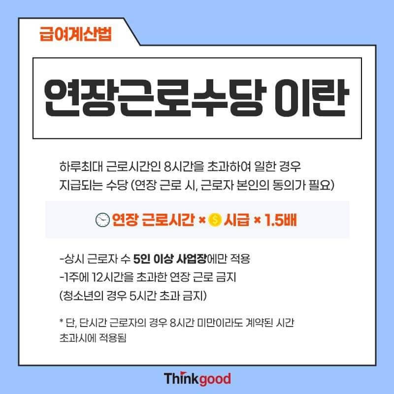 즉, 8시간 이내는 통상임금(시급)의 1.5배, 8시간 초과 분은 2배로 계산됩니다.
