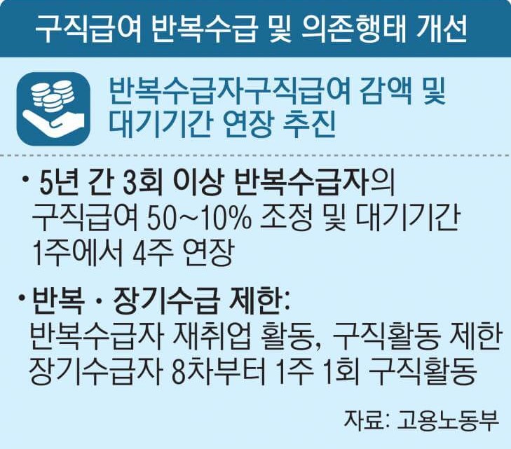 - 반복 수급자와 장기 수급자의 재취업 활동 인정은 기준이 더욱 강화합니다.